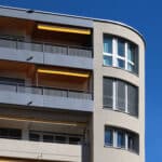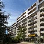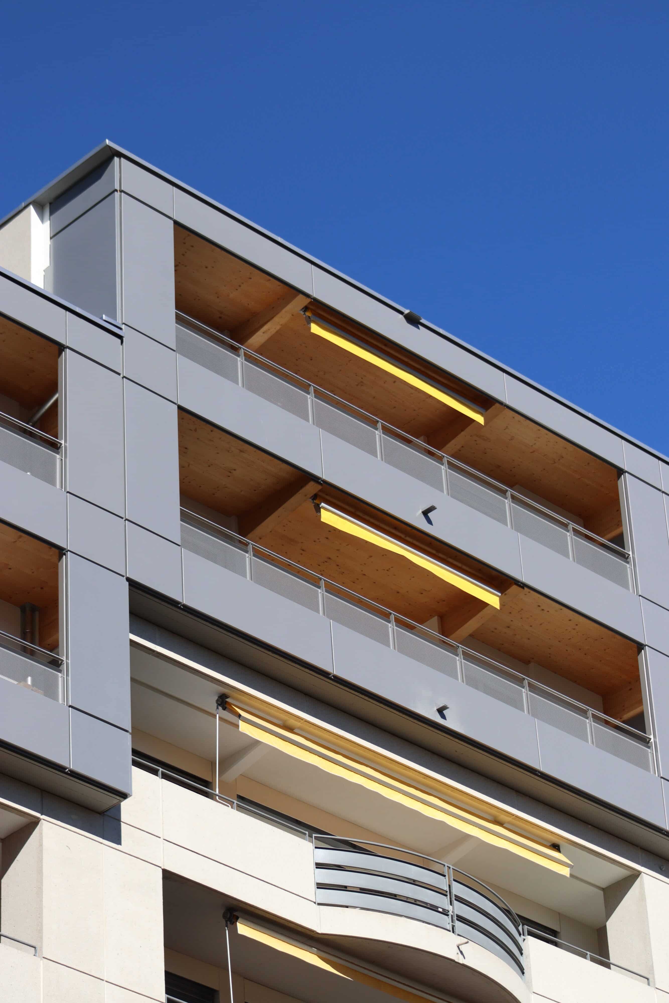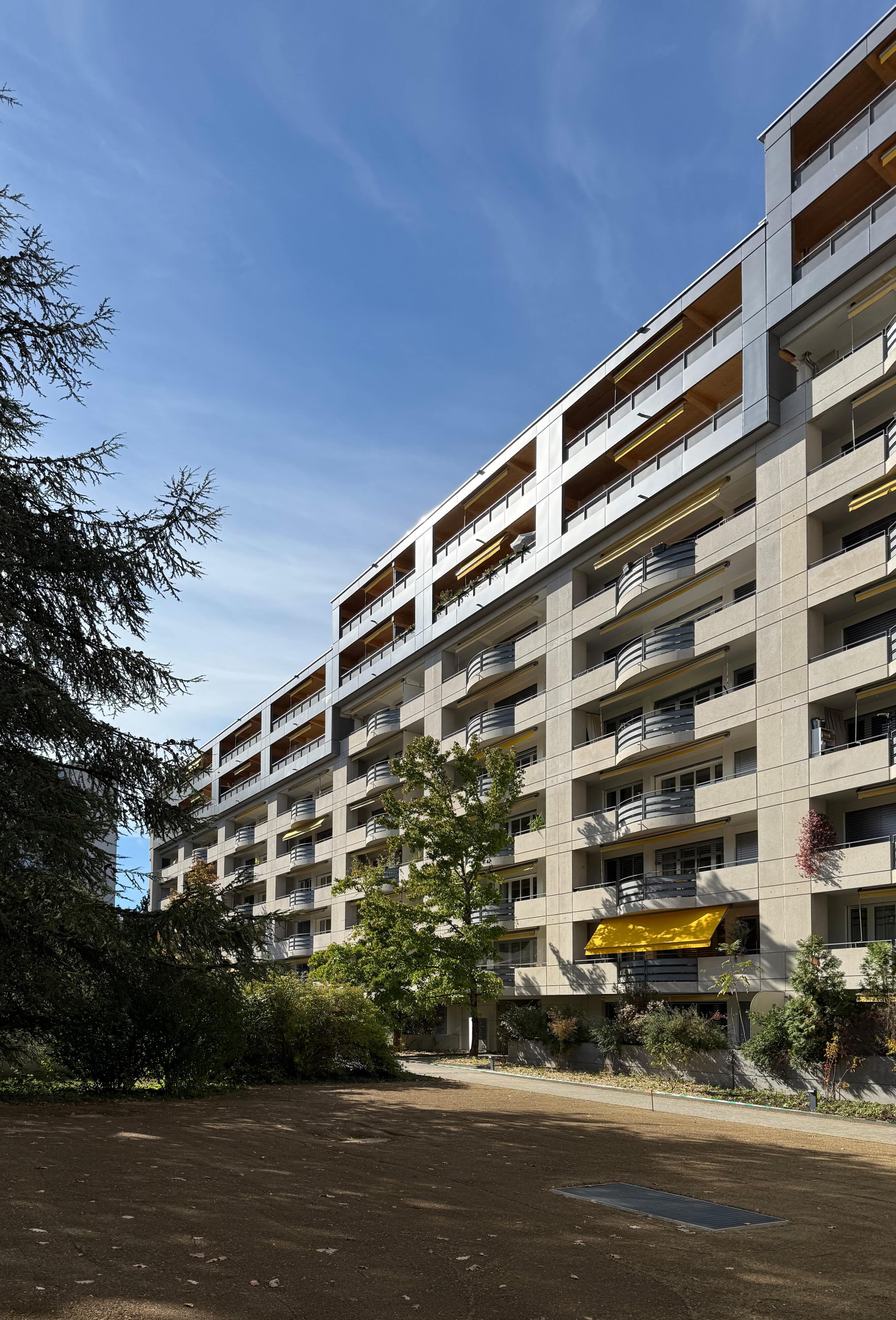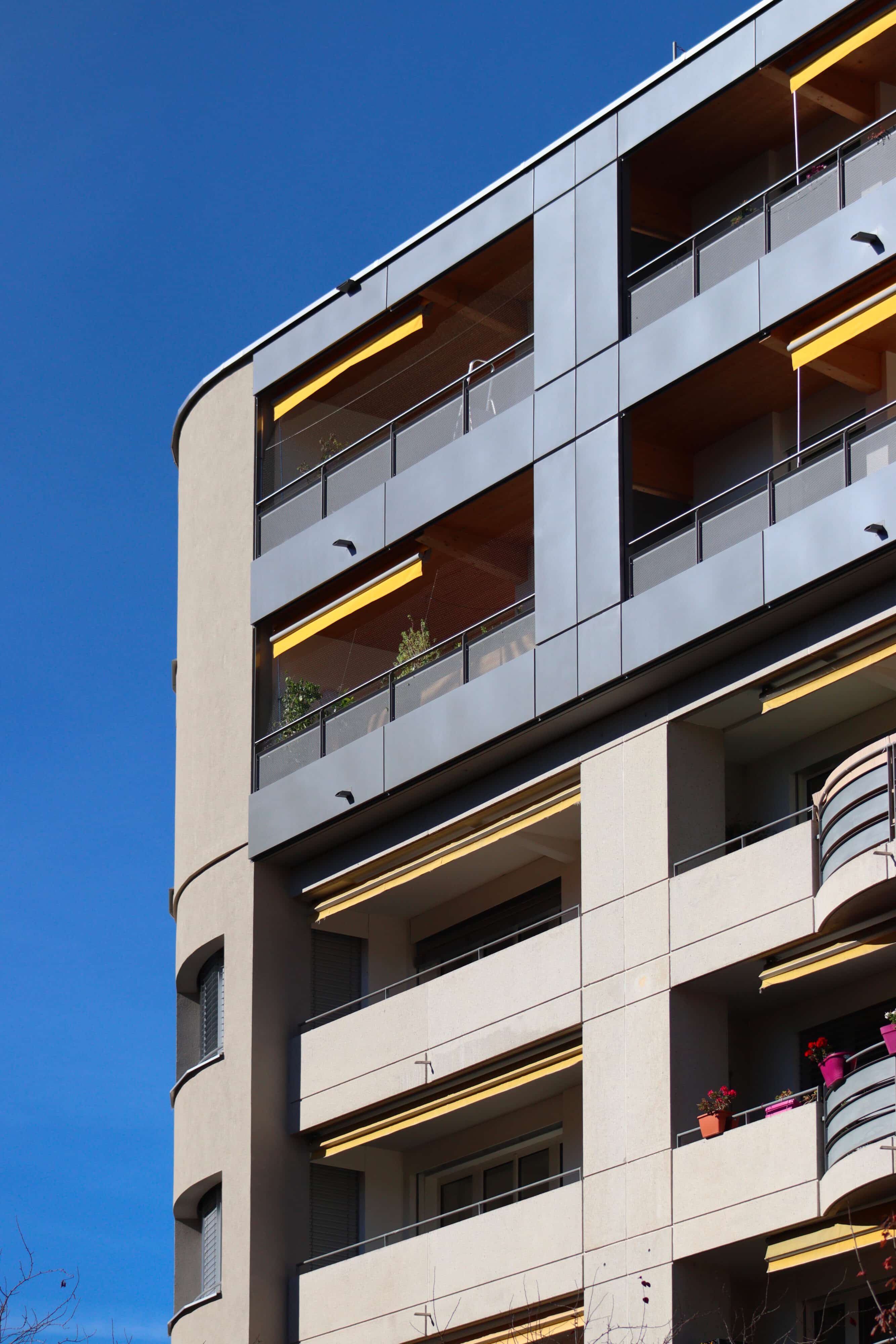 Assainissement énergétique des 4 activités et 84 logements existants : raccordement au CAD, changement des fenêtres, changement des protections solaires, isolation par l’extérieur et finition crépis.